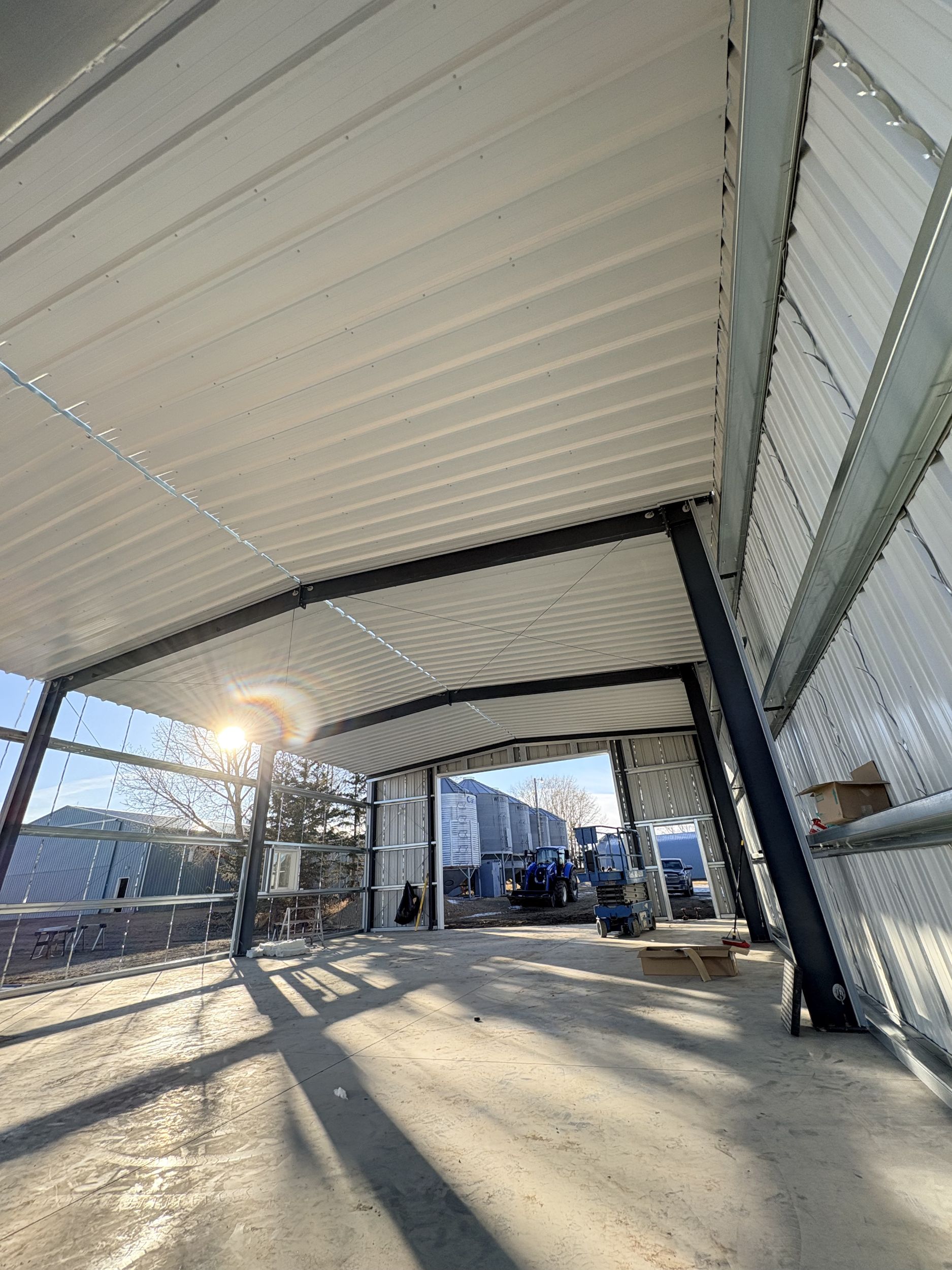 Cold storage buildings are built for shelter—not comfort. To support the goal of safely storing valuable vehicles and maintaining an enjoyable indoor space year‑round, the building needed to be upgraded to a fully insulated, heated structure with a bright, clean interior finish.